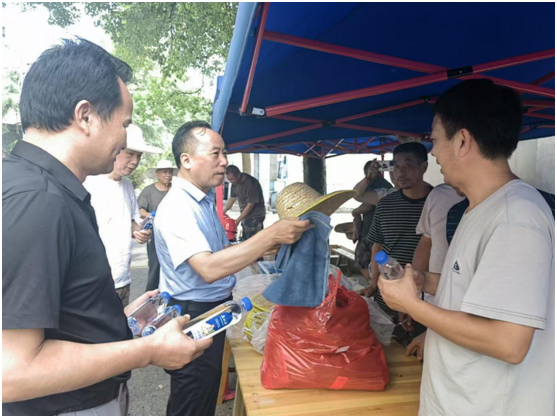 “注意防護,小心中暑!”在臨時休息區(qū),雨民董事長將防暑藥品、草帽、毛巾和礦泉水等防暑物資發(fā)放給農戶和裝卸工人,與他們展開親切交談,了解今年的糧食收成情況,詢問其對三塘公司現(xiàn)場服務的滿意程度等,溫和的笑容和真摯的問候讓農戶們倍感親切。